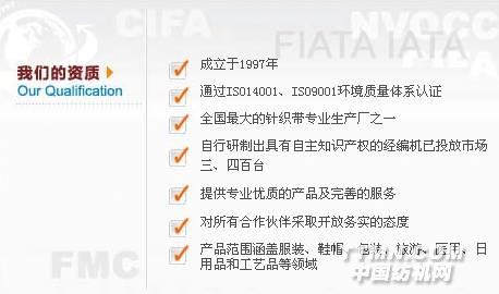 公司現擁有七十多臺德國進口經編機、全自動電腦針織帶機、經編圍巾機、經編褲襪機、起毛機和定型機等設備,年產服裝針織帶1億米、全自動電腦針織織帶機、經編圍巾機、經編褲襪機200-300臺、經編面料1500萬米。產品范圍涵蓋服裝、鞋帽、包裝、旅游、醫用、日用品和工藝品等領域,并多次通過國際有關檢測機構認證。