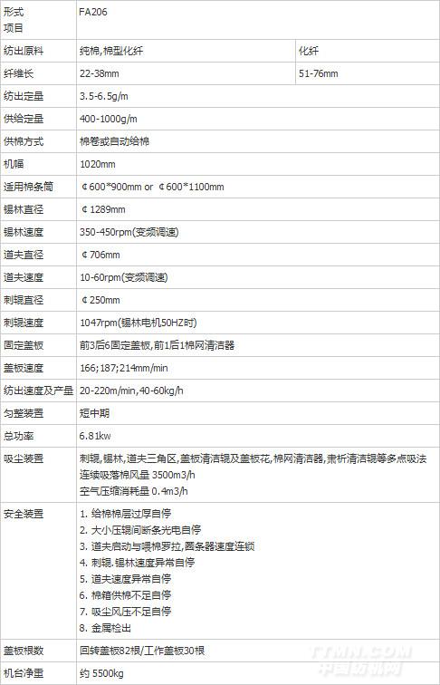 FA206型梳棉機