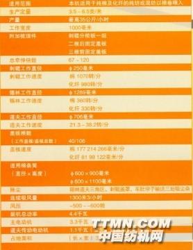 186G系列梳棉機(jī)技術(shù)規(guī)格表