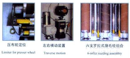 6支立式組裝磨毛輥可根據布類磨毛要求變頻調速。觸摸屏控制操作方便。