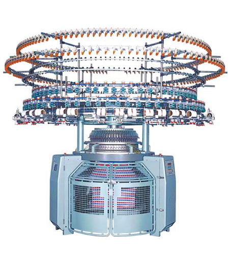 金天梭牌單面電腦自動變色針織機,采用立式調(diào)線頭,不易積花絮。