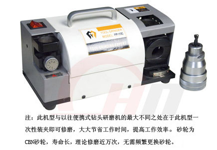 3. 刃磨性:可以刃磨2槽麻花鉆,鉆頭材質為高速鋼、鍍錫鉆、鍍鈷鉆、拋物線鉆、錐柄鉆、硬質合金鉆(需選用金剛石砂輪)。鉆柄長度不限??梢哉{節刃磨量。