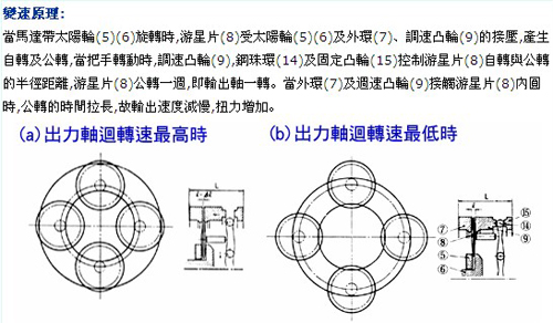 KIMPO-DISCO無段變速機,輸入容量自0.18kw~22kw,其扭力的傳導(dǎo)是由多組斜面游星片面的傳導(dǎo),所以能夠承受過負載、沖擊負荷和反動作負荷的特殊環(huán)境,在低速時因游星片軌道擴大而力臂增大,故扭力變大效率特高。