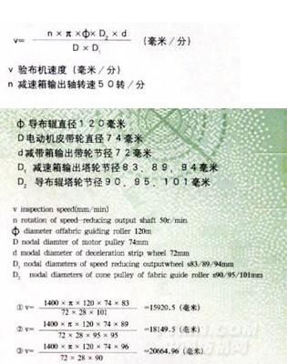 3.驗(yàn)布機(jī)速度為:16米/分,18米/分,20米/分三種速度,調(diào)整方便,嚴(yán)不速度的計(jì)算公式