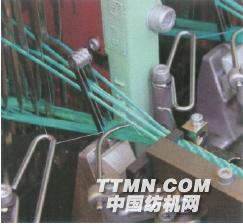 ③ VARITEX V5MJ 4/65 型提花織帶機(jī)條帶數(shù) 4 條,配 J192 型提花機(jī),384 針,適用織造彈性和非彈性經(jīng)提花條帶織物。展機(jī)配有加強(qiáng)收帶裝置,開(kāi)口機(jī)構(gòu)為花鏈片控制 2 片綜框。