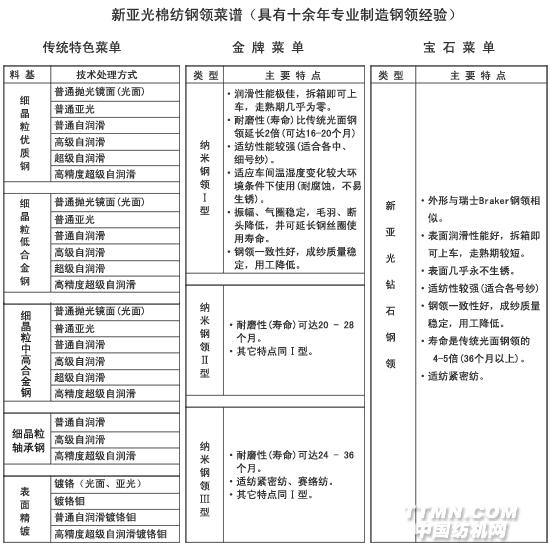 規(guī)格、適紡支數(shù)和鋼絲圈配套介紹 |