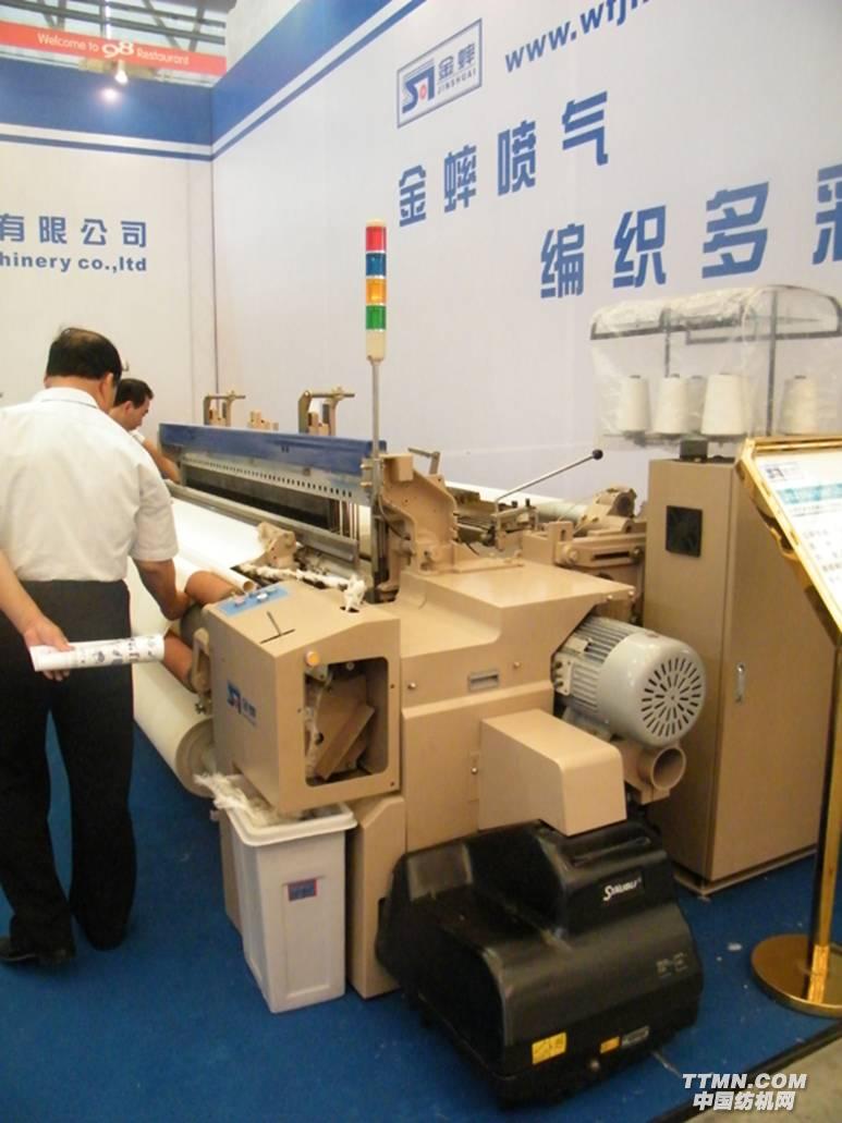 濰坊金蟀機械有限公司在《2010年中國國際紡織機械展覽會暨ITMA亞洲展覽會》展出的是JS21N型系列噴氣織機金蟀自主研制開發的最新一代高性能噴氣織機,設計出發點是緊貼噴氣織機技術的最前沿,面向中高端織造客戶。整機采用國際最先進的機光電一體化技術,并融入了具有自主知識產權的十幾項專利技術,真正實現了高生產效率、廣泛的織造范圍、節省能源和極高的可靠性;先進的電子控制技術使其操作更加簡易,更加迅速地適應制造品種的更換,完美的織造出各種高附加值的織物。