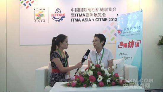 記者:觀眾朋友們,大家好!這里是2012ITMA 上海紡機(jī)展的展會(huì)現(xiàn)場(chǎng)。我是中國(guó)紡機(jī)網(wǎng)記者劉曉鈴,今天非常有幸采訪到江蘇海大印染機(jī)械有限公司的陳麗潔女士走進(jìn)我們的演播廳,陳總您好。