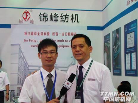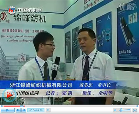 在2010年中國國際紡織機械展覽會暨ITMA亞洲展覽會現場,錦峰公司董事長戴步忠先生接受了記者的采訪。據戴董介紹,本次展會錦峰主要展出八個系列產品:棉精梳機整體錫林、整體頂梳、鈦合金鉗板結合件、高精度軸承鋼平(錐)面鋼領和梳棉機固定蓋板、活動蓋板、棉網清潔器等,它們是近兩年研發的八個自主知