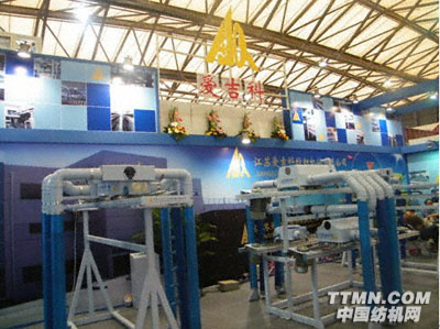 記者在現場了解到,愛吉科 展出的AJQ系列巡回吹吸清潔機,其主要功能是對紡織機各部位進行往復巡回清潔,從而改善生產環境、清除飛花和抑制塵屑積聚,減少因飛花、塵屑附著造成的斷頭及條干不勻的現象,在提高生產效率的同時降低車間含塵量,極大程度上優化了紡織企業生產環境,保證企業文明生產。其中,公司自主研發的AJQ—Ⅰ系列(龍骨傳動)結構嚴謹、運行平穩、無振動,而且節約能源,這一系列的環保產品在展會上一經推出,就贏得了與會代表的高度專注