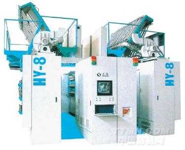 公司在此次展會上展出的雙面 24 錠的 HY-8 型假捻變形機,最高機械速度為 1200m/min。該機的主要特點體現在:自動落筒系統,滿筒后自動完成滿筒與空筒切換,實現無人操作,保證成品絲長度一致;取代傳統的槽筒箱的精密卷繞技術,單錠驅動的電子卷繞系統實現電子防凸防疊和卷繞張力控制,結構簡單,卷裝成形優化;牽伸采用導絲盤方式,每個錠位實現單電機直接傳動,單個錠位都可維護保養,提高效率;且牽伸一致性好,特別適合細絲,保證絲的品質;3 層上油,保證上油的均勻性和絲線的張力一致。用單錠單電機傳動假捻器,降低振動和噪聲,適應高速。