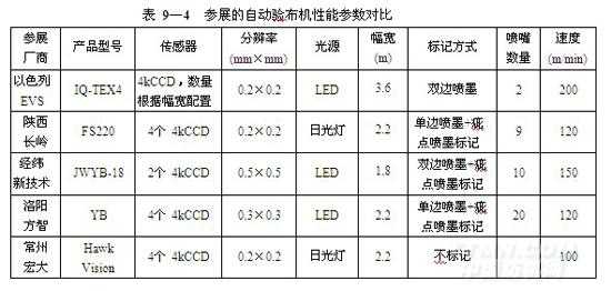 以下為參展的自動驗布機性能參數對比(表9-4)
