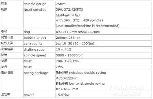 特征:全新設計:車頭封閉式游浴傳動箱,斜齒鋼齒輪,油泵循環潤滑,自動滴油系統;超越式級升撐爪機構,不用調換棘輪,管紗成形好,適應高速退繞;可編程控制(PLC)自動控制紡紗過程,主電機變頻調速;機器截面優化設計,斷頭率低,產量高,紡紗質量好;新型吸毛管裝置,操作方便,防止刮花;吹吸風清潔裝置,改善紡紗質量;觸摸屏控制技術;纜型紡紗新技術,紡紗更好,更光潔。