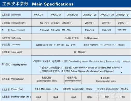 JWG1724系列劍桿織機具有優良的機械電子性能,以控制經紗和緯紗的張力盡可能均勻,使用戶得到高質量的織物。能適應棉、毛、絲、麻等天然纖維、人造以及合成纖維的薄、中、厚重織物的織造。優美的外觀、可靠的結構、高性能的電氣控制系統以及簡捷的智能化操作,消耗低廉、保養便捷,顯示了它們的經濟性與實用性。