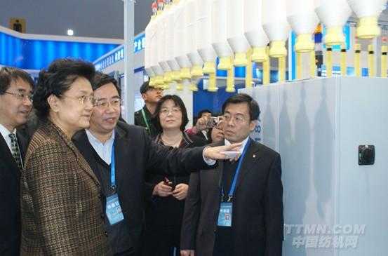國務(wù)委員劉延?xùn)|參觀國家十一五成就展經(jīng)緯粗細絡(luò)聯(lián)合機展臺