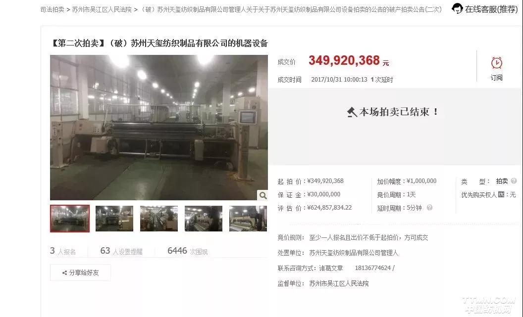 3月30日,巨誠系企業名下英奇倉庫的存貨(布匹)拍賣成功,起拍價為9,183,680元,成交價為12,183,680 元。