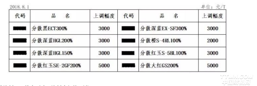 8月1日起又一紡織重要原材料——分散染料要漲價了!據悉,受中間體價格繼續上漲影響,自2018年8月1日起,分散常規系列上調2000-5000元/噸。漲勢相當震撼!不過,大家要注意,估計這還只是開始!