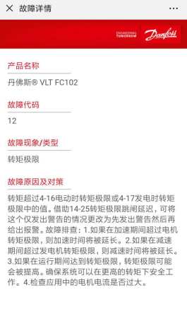 以上就是丹佛斯傳動全新的故障速查系統,我們希望,通過最新版的故障速查系統,能更好得與客戶拉近距離,為大家提供最有效、最優質的服務。