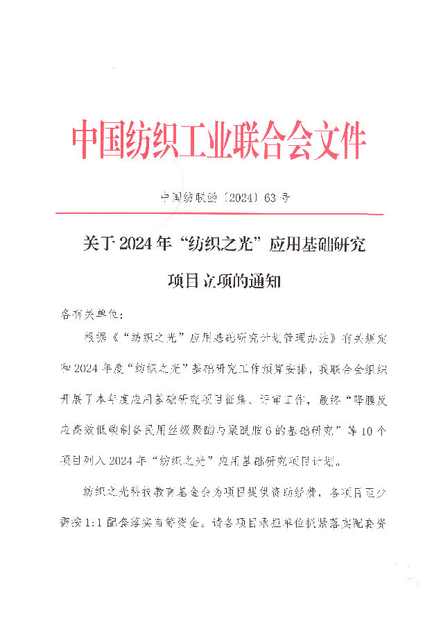 關于2024年“紡織之光”應用基礎研究項目立項的通知