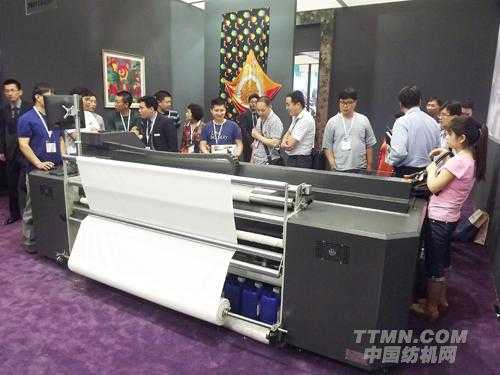 這次展會上,杭州宏華數(shù)碼科技股份公司帶來了多款產品,現(xiàn)場展示機器成果,引得不少人前來洽談業(yè)務。