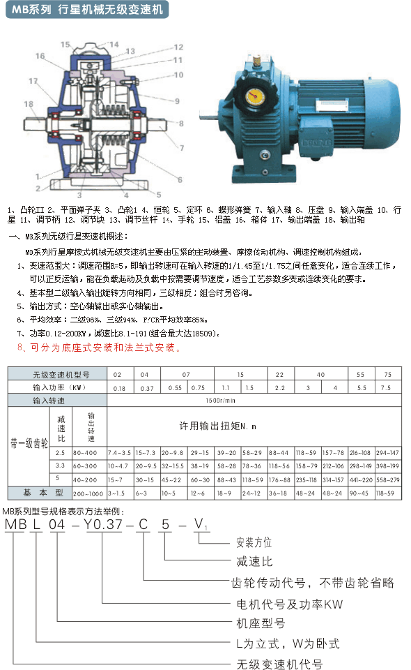 二:VR型無段變速機:功率:1/2HP-3HP;變速范圍1:4