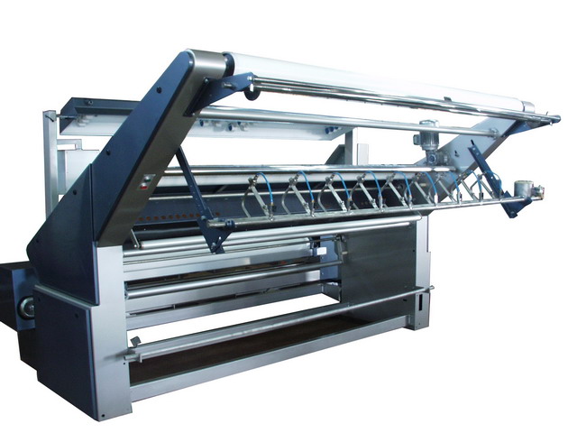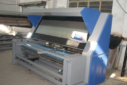 無張力驗布機技術特點: 1 本機主要適用于制衣廠、針織廠及相關待業成品布驗卷,尤其適用于針織布; 2 獨特設計的電子張力調較,附有拔布通,可使一般卷邊平整; 3 電子自動光電追邊,卷布整齊; 4變頻調速、帶計數表計數; 5 上、下燈光對照; 技術參數 : 1 .可驗布寬度: 1800~2500MM(85“)或可加大 2 .卷/放布速度: 0~35Y/M 3 .傳傳系統:電子調速、電子張力調校