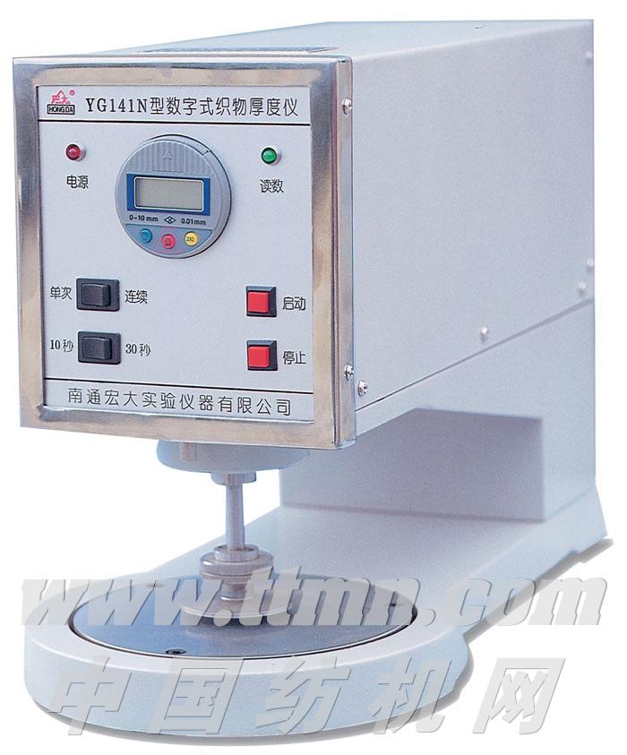 YG141N數字式織物厚度儀 用于測定各類紡織品、紡織制品、皮革、塑料、地毯、紙張及非織造布的厚度及均勻度。 適用標準:GB/T3820;FZ/T60004;ISO5084,9073。 主要技術指標  數字顯示(LCD)  測定厚度范圍:0.001~10mm 最小分度值:0.001mm  壓腳直徑:φ7.98mm、φ11.28mm、φ25.22mm、φ35.68mm、φ56.43mm等五檔。  壓重砝碼:50cN(2只),100cN(2只),200cN(1只)  壓重時間:10s、 30s  電源電壓:AC220V±10%  外形尺寸:210×450×310mm(L×W×H)