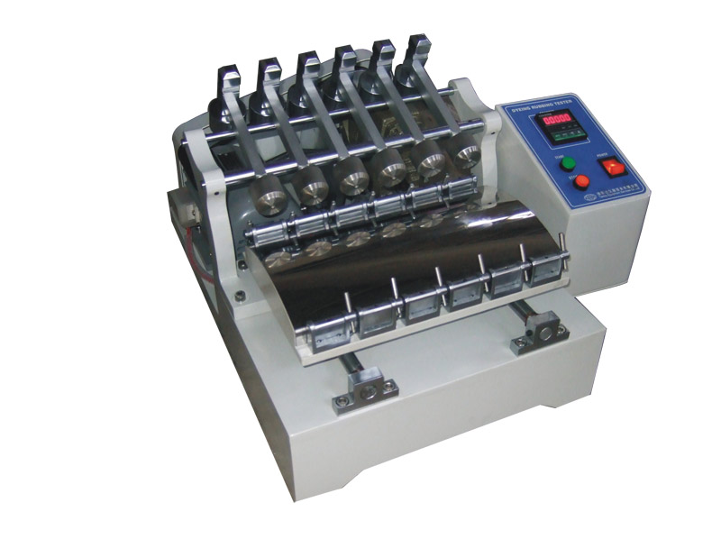Y571N摩擦色牢度儀 用于各類有色紡織品的耐干、濕摩擦及刷洗色牢度的試驗。 儀器特點: 1. 采用預置式LED顯示計數器,試驗次數可任意設定。 2. 摩擦試驗平臺經鍍鉻處理,刷洗試驗平臺經電泳漆處理,并有溢水管接頭。3.小軋車軋輥采用H62黃銅,并經酸洗處理。 適用標準:GB/T3920;GB/T420;GB/T5712;ISO105-X12;ISO105-D02;BS1006 D02;DIN54021;IWS TM165;JIS K6328等 主要技術指標  試驗次數:1~9999, LED (數字式預置設定  摩擦動程:100mm  摩擦速度:60次/min  摩擦壓力:9N  摩擦頭:圓形:φ16mm 方形:19×25mm 標準尼龍刷  電源電壓:AC220V±10% 40W  外形尺寸:770×280×250mm(L×W×H) Y571A摩擦色牢度儀  適用標準:AATCC測試方法8-1996《AATCC耐摩擦色牢度測定四(摩擦牢度)》。  摩擦頭壓力:9N±10%  摩擦頭尺寸:φ16mm  摩擦頭行程:104±3mm 計數范圍:0~99999次 試樣尺寸:50×130mm(L×W) 外形尺寸:615×160×230mm(L×W×H)  儀器重量:約10Kg