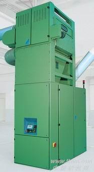 本機適用于加工原棉、化學纖維和混合原料,被加工的原料借助于前方機臺風機的抽吸進入本機,沿導流板呈螺旋狀態運動,由開棉輥筒進行開松,被塵格分離的雜質落在塵箱內,由自動吸落棉裝置排到濾塵系統。本機作為預開棉機,一般安裝在抓棉機和混棉機之間。