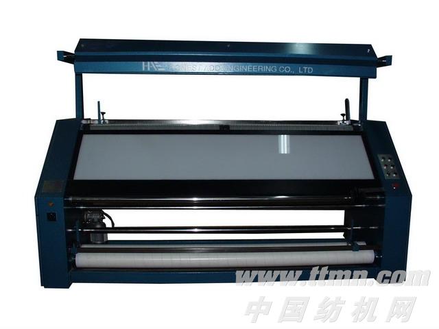 布匹通過張緊器、導(dǎo)布輥及送布裝置由擴(kuò)布輥進(jìn)行擴(kuò)布,再經(jīng)一組自動吹邊,由電眼控制折布裝置進(jìn)行整齊折布。