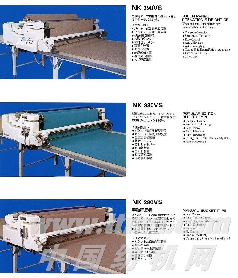 加長數控全自動切捆條機\切條機 功能:單刀適用于皮革,薄膜等易燒材料的裁切,圓刀適用于布料、無紡布、泡棉、帳篷,雨傘,皮料、醋酸布,補強帶,導電布,銅箔,紙張和反光材料等直/斜紋的各式寬度切條。適用于服裝、鞋帽廠、帳篷廠,雨傘廠,包袋廠、泳裝廠、家紡等行業。 規格: 門幅: 2400mm 布卷轉速 0-800rpm 布卷直徑: 38-270mm 功率: 3KW 最小切條寬度: 2mm 電壓: 380V/220v 機器尺寸: 3400×750×1400mm 配備待點: 1.主軸與圓刀動力使用無級變速系統和變頻系統,可做高低調速及正反轉切換控制,達到最佳載切質量。 2. 采用高精密步進系統控制切割寬度,配合精密滾珠螺桿及滑軌,達到高精度切割,切割精度可達到0.1MM. 3. 單刀 /圓刀可隨意互換,不須拆卸任何裝置,采用AC馬達調速系統直接控制切割進刀及速度,以達到高品質之切條。(半自動機型則采用杠桿推進方式載切) 4. 操作界面使用LCD 中文顯示屏,可直接輸入載切寬度及數量設定及動作設定。 5. 斜紋卷布可在20度至70度之間調節. 6. 本機還可配備縱(橫)直紋/斜紋自動對邊卷布機,使布料的浪費達到最低. 7.本機還可配置單刀裝置,適用于皮革,薄膜等易燒材料的裁切,單刀 /圓刀可隨意互換,不須拆卸任何裝置