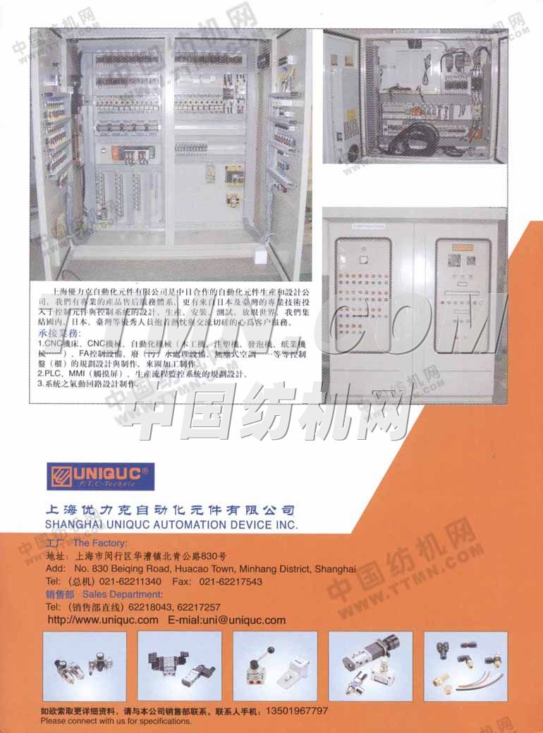 您所在的位置:紡機(jī)網(wǎng) > 紡織機(jī)械樣本庫 > 上海優(yōu)力克自動(dòng)化元件有限公司
