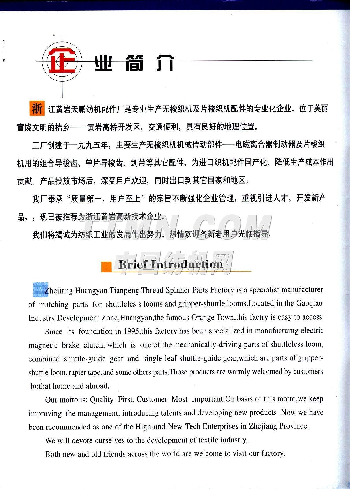 您所在的位置:紡機(jī)網(wǎng) > 紡織機(jī)械樣本庫 > 浙江黃巖天鵬紡機(jī)配件廠