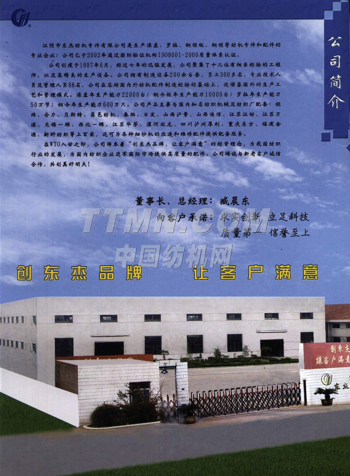 您所在的位置:紡機(jī)網(wǎng) > 紡織機(jī)械樣本庫 > 江陰市東杰紡機(jī)專件有限公司