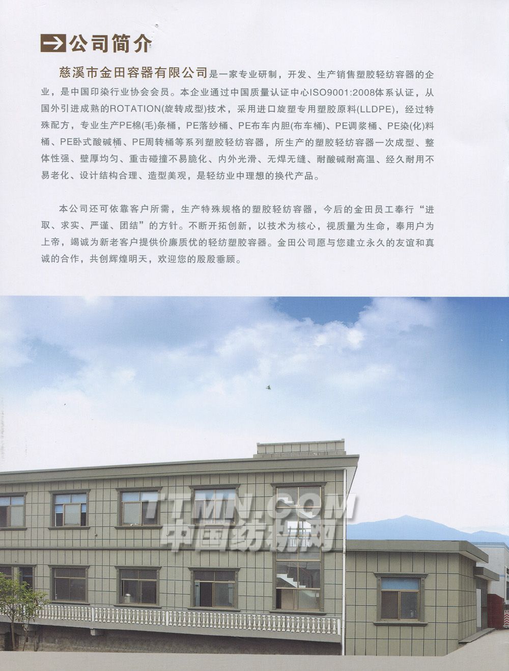 您所在的位置:紡機(jī)網(wǎng) > 紡織機(jī)械樣本庫 > 慈溪市金田容器有限公司
