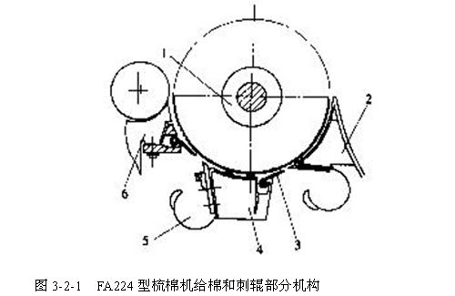 圖3-2-1  FA224型梳棉機給棉和刺輥部分機構