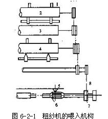 (二)牽伸工藝配置  粗紗機的牽伸工藝參數主要包括牽伸倍數及其分配、粗紗定量、羅拉握持距、羅拉加壓、原始隔距、集合器口徑等,現分述如下。