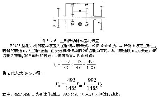 在變速傳動轉臂式差動裝置中,id為恒速傳動比,1-id為變速傳動比。雖然差動裝置的類型不同,但所起的作用是一樣的。由主軸和變速裝置傳來的速度,經差動裝置合成后傳向筒管,變速裝置只負擔其中一小部分的轉速,而絕大部分的速度是由主軸來承擔的。