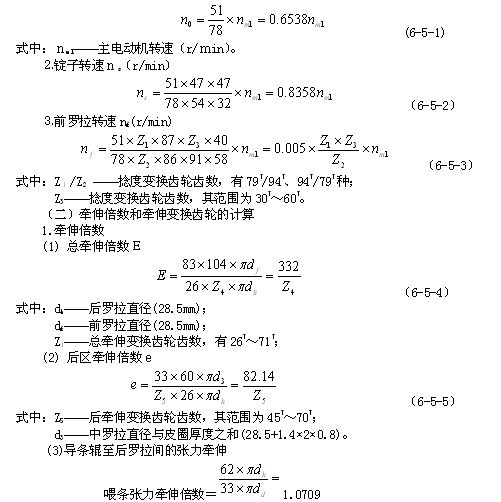 (1)粗紗機的恒速機件,如牽伸羅拉、導條羅拉、錠子及筒管的恒速部分,都應由主軸直接傳動。