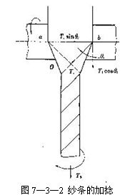 圖(2)是一根纖維在紗條中側(cè)面投影,纖維頭端被擠出后,由于沒有張力及向心壓力作用,所以不能再壓向內(nèi)部,而留在紗的表面形成了毛羽。紗條在承受拉伸負(fù)荷時,纖維承受張力的同時,對紗條產(chǎn)生向心壓力,促使纖維互相抱緊擠壓,增加了纖維間的滑動阻力和紗條緊密度,使紗條獲得一定強力及其他物理機械性能。