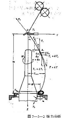 TR、T。、TW、TS(見圖7—5—2)之間的關系是密切的,變化規律是一致的,而且相互聯系和影響。為了獲得各張力的數值,TS一般采用動態應變儀進行測定,T。與TS間可用歐拉公式計算:
