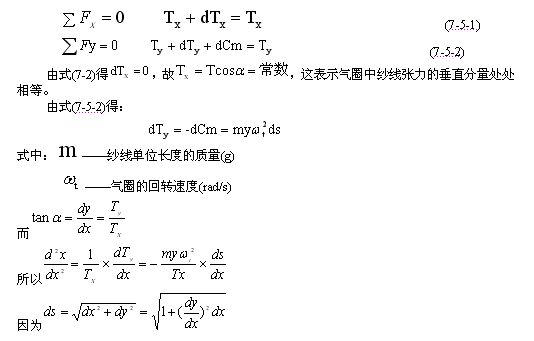 建立以導紗鉤中心為圓點如圖7—5—2所示的坐標系,作用于氣圈紗段的力主要有氣圈頂部張力To、底部張力TR、高速轉動的離心力Cm及空氣阻力、哥氏力和紗線重力。氣圈的形態客觀上反應了這些力的大小和相互關系,因此在某種程度上紗線張力及其變化可以根據氣圈形態來觀察。