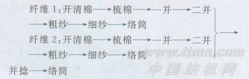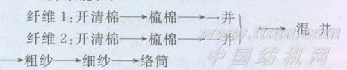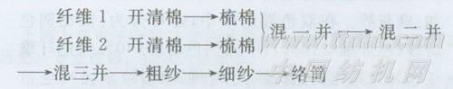 這種混和方法適合于兩種性能相近的纖維,混色較為均勻,工藝流程非常簡單,生產管理的難度較小。