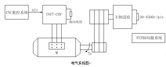 事實證明采用CHV100系列高性能矢量變頻器完全能夠滿足機(jī)床主軸控制的要求。CHV100采用的領(lǐng)先的磁通算法,即使在低轉(zhuǎn)速(低頻)運(yùn)行下也能平穩(wěn)輸出150%的轉(zhuǎn)矩,以滿足不同零件的加工需要,完全可以取代傳統(tǒng)的滾動軸承主軸結(jié)構(gòu),并且此主軸結(jié)構(gòu)簡單、緊湊、可以實現(xiàn)真正的無級調(diào)速。此主軸的轉(zhuǎn)速由外部模擬量信號來控制輸出頻率,在不同的加工工藝(如;粗加工、精加工等)需要不同的轉(zhuǎn)速,此時可由數(shù)控系統(tǒng)輸出不同的模擬量電壓信號給變頻器,實現(xiàn)不同的轉(zhuǎn)速,同時啟停信號也由數(shù)控系統(tǒng)控制,提高了自動化程度、延長了刀具的使用壽命。