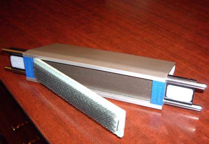 蓋板條與蓋板骨完全依靠磁力黏附固定,不需要螺絲等緊固件,也不需要任何機器來包、卸蓋板。據(jù)稱采用這套磁力蓋板系統(tǒng)以后,由于沒有了包蓋板過程中產(chǎn)生的誤差,使得蓋板針面的平整度明顯提高,在整個機器寬度范圍內(nèi)梳理隔距更加精準;更換蓋板針布非常方便、節(jié)省勞動力,;新蓋板針布上機后更不用磨針找平,延長了針布使用壽命,更有利于生條質(zhì)量。