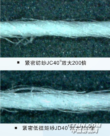 緊密低扭矩紗是在緊密紡細(xì)紗機(jī)上加裝一套特殊的假捻裝置,對(duì)前羅拉輸出的須條給予一定的假捻,從而達(dá)到改變加捻三角區(qū)內(nèi)的紗線表面纖維分布,可在較低捻度的條件下通過增加紡紗段紗線的強(qiáng)力,從而生產(chǎn)出具有捻度最低、扭矩最小、紗體柔軟的緊密低扭矩紗線,其制成的面料有緯斜小、布面柔軟、紋路清晰的布面優(yōu)勢(shì)。坯布不需經(jīng)過物理或化學(xué)的定性處理,節(jié)約物料消耗,減少化學(xué)試劑、降低纖維損傷。
