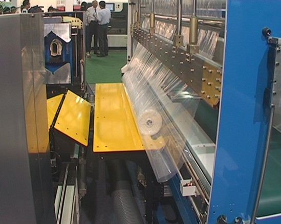 譚經(jīng)理:我們這次主要帶來兩臺(tái)機(jī)器,一臺(tái)就是這個(gè)標(biāo)簽機(jī),另外就是這個(gè)自動(dòng)包裝機(jī),最主要的就是目前這臺(tái)自動(dòng)包裝機(jī),自動(dòng)包裝機(jī)大家都不陌生,因?yàn)榕_(tái)灣跟那個(gè)大陸,還有一些歐美國(guó)家都有生產(chǎn),但是韓國(guó)這一臺(tái)設(shè)備,它主要就是來包裝的產(chǎn)品時(shí)整潔美觀,然后另外就是節(jié)能省力,還有一個(gè)就是說無需熱收縮,現(xiàn)在目前市面上都是用的熱收縮的機(jī)器,然后它布需要熱收縮,就不影響產(chǎn)品的質(zhì)量,因?yàn)槟氵@個(gè)熱收縮一擠壓,那個(gè)紡織品就會(huì)變形,顏色就會(huì)跑掉,它這個(gè)不需要這個(gè)功能,就包裝的很緊,完全密封的,還有那個(gè)刀口性質(zhì),刀口它是屬于電頻加熱的,別的產(chǎn)品就是屬于刀口熱切割,它這個(gè)不是的,它屬于電頻冷切割,然后它就