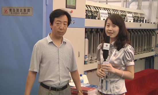 (圖為中國(guó)紡機(jī)網(wǎng)記者現(xiàn)場(chǎng)采訪青島國(guó)正機(jī)械有限公司副總經(jīng)理王文志)