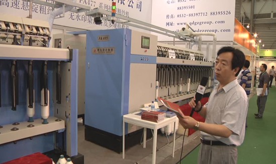 在2011上海紡機(jī)展上,青島國(guó)正機(jī)械有限公司副總經(jīng)理王文志為我們介紹了公司此次參展的概況:“這次十五屆紡展公司主要展的兩個(gè)機(jī)型,一個(gè)是四軸無(wú)差速的,四軸連動(dòng),再一個(gè)就是三軸的,也是無(wú)差速現(xiàn)在我們公司的無(wú)差速目前是國(guó)內(nèi)國(guó)際上是最先進(jìn)的設(shè)備,那么這個(gè)設(shè)備一跑高速,二可以說(shuō)紡紗挑桿都能提高是國(guó)內(nèi)軌跡最先進(jìn)的,那么這三臺(tái)的三軸車(chē)呢,取得了國(guó)內(nèi)獨(dú)有的專利,也是未來(lái)跑高速,也是為了提高質(zhì)量,所以說(shuō)這是我們公司獨(dú)有的產(chǎn)品,這是我們的專利號(hào),目前國(guó)內(nèi)所有紡織公司做粗紗的,我們無(wú)差速是最大亮點(diǎn),還有一個(gè)第二個(gè)是我們本廠的一個(gè)專利,。那么現(xiàn)在紡紗要求提桿要求提高質(zhì)量提高價(jià),那么這一款可以緩解紗的質(zhì)量。