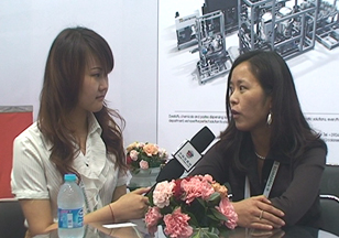 趙總:因?yàn)槲覀兊漠a(chǎn)品每一年都有調(diào)整。從2002年我們每次都參加紡機(jī)展,之前是上海和北京各一次,現(xiàn)在是每一年都在上海ITMA,像今年我們就是我們的起毛、剪毛后整理設(shè)備那這一家其實(shí)是意大利1925年成立的,在意大利是第一家后整理設(shè)備。另外還有()和()這個也是他們每年有1700萬歐元的()在意大利屬于一個比較大的集團(tuán)。()是1985年推出全自動的配料系統(tǒng),這個是全世界第一家推出染料助劑系統(tǒng)的在全世界很有名,可以說是數(shù)一數(shù)二的品牌。另外還有()這個小拉幅定形機(jī)是跟柔染機(jī)配套的。另外我們還有一個()整尾器,這個()在紡機(jī)里面很有名氣的,是在整尾、剖幅機(jī)這一塊做的很好。
